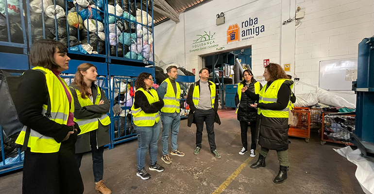La delegación de Sumar y en Comú Podem ha realizado una visita guiada a las instalaciones de Solidança, entidad asociada a AERESS, a la que se han sumado también representantes de Engrunes y Andròmines, también miembros de la red.