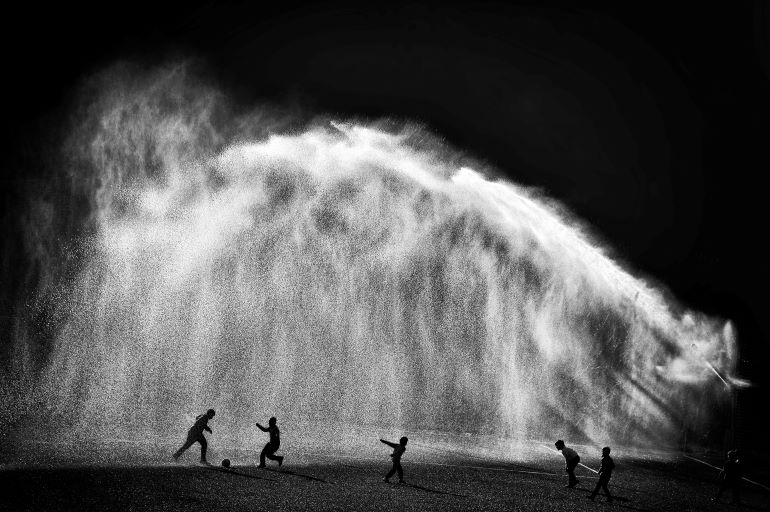 La fotografía premiada en la categoría Agua, ‘En el descanso’, de Carlos de Cos Azcona, es “una imagen llena de movimiento y diversión, en la que un perfecto manejo de luces y contrastes consigue capturar la majestuosidad del agua, acentuada por el embrujo del blanco y negro”. ‘Triatletas en el agua’, de José Miguel Romero Barco, es el título de la imagen que se ha llevado la mención de honor en esta categoría.